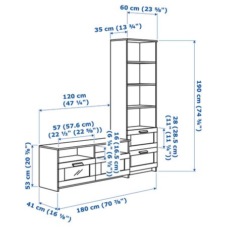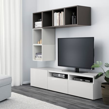 БЕСТО / ЭКЕТ 292.756.02 Комбинация для ТВ, белый/светло-серый, темно-серый (180x40x170 см)