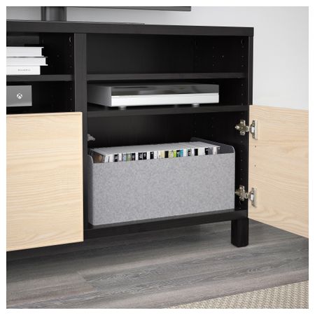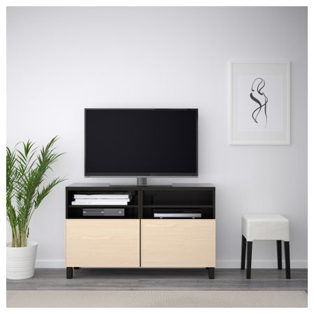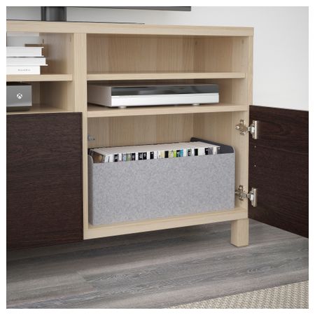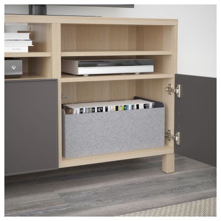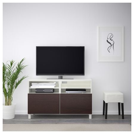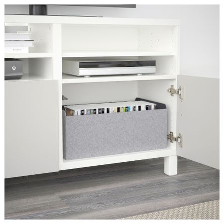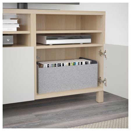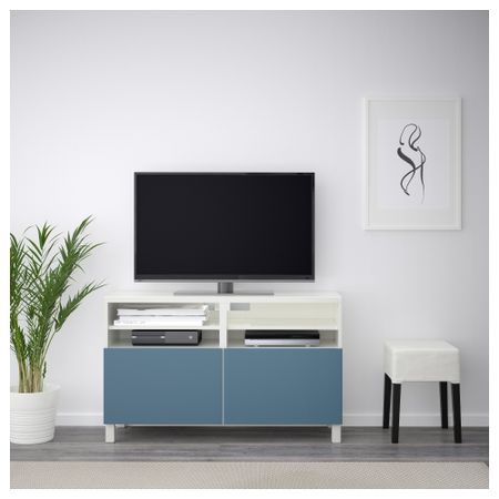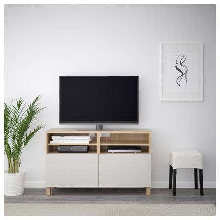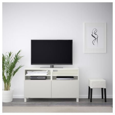 БЕСТО 491.914.61 Тумба под ТВ с ящиками и дверцей, белый, Сельсвикен глянцевый/бежевый матовое стекло (180x40x48 см)