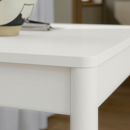 Меламиновая столешница устойчива к воздействию влаги и повреждениям и проста в уходе. Обеденный стол с вкладной доской можно использовать для двоих, а можно раздвинуть, чтобы рассадить четырех человек. 1 вкладная доска прилагается.