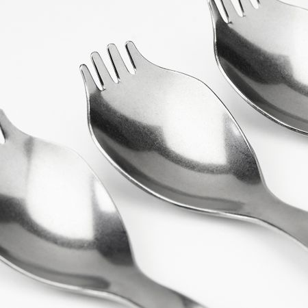 Можно использовать и как ложку, и как вилку. Удобно брать с собой для перекуса в дороге или на прогулке. Сделано из нержавеющей стали — прочного и легкого материала.