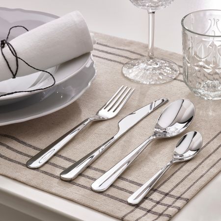 Столовые приборы изготовлены из нержавеющей стали — прочного и простого в уходе материал. Столовые приборы с лаконичным дизайном хорошо сочетаются с различными видами сервировки стола.