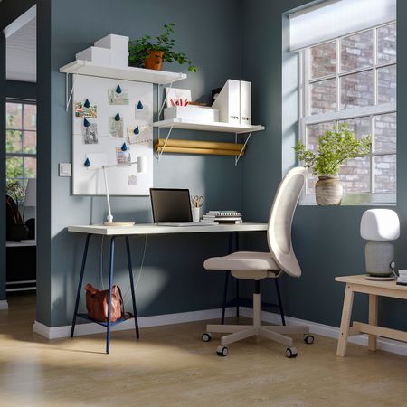 Письменный стол, голубой/черно-коричневый 140x60 см IKEA LAGKAPTEN ЛАГКАПТЕН / ALEX АЛЕКС