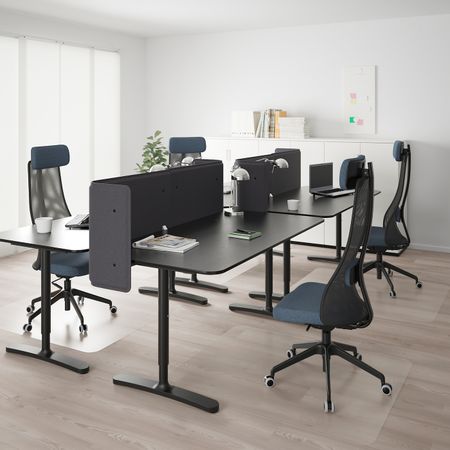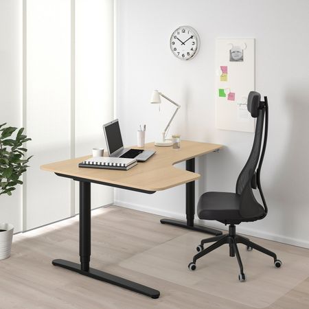 Угловой письменный стол лев/трансф, дубовый шпон, беленый/черный 160x110 см IKEA BEKANT БЕКАНТ