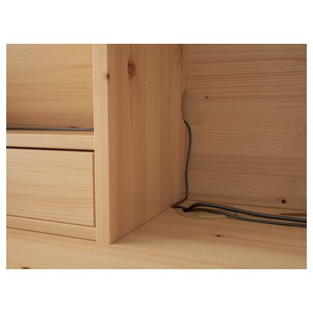 С отверстиями под ножки, легко собирать.Благодаря стопорам ящик не выпадает из каркаса.Благодаря лицевой отделке задней панели модуль можно поставить в центр комнаты.Регулируемые ножки обеспечат устойчивость даже на неровном полу.