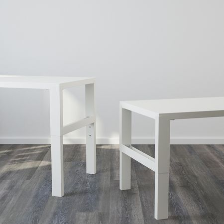 Благодаря пластиковым накладкам ножек стол можно передвигать, не опасаясь царапин на полу.Столешницу можно установить на комфортной для вас высоте, так как высота ножек регулируется от 60 до 90 см.Шурупы для закрепления ножек к столешнице прилагаются