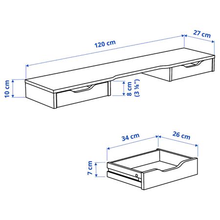 Благодаря стопорам ящик не выпадает из каркаса.Благодаря лицевой отделке задней панели модуль можно поставить в центр комнаты.Пластиковые накладки, предотвращающие скольжение столешницы, прилагаются.