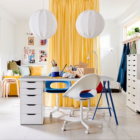 Благодаря доводчикам ящики закрываются плавно и бесшумно. Использование наклеек на мебельные ножки ФИКСА предотвратит повреждение поверхности пола. Дизайнер Marcus Arvonen.