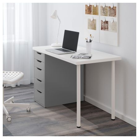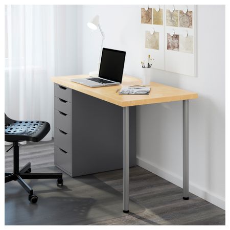 ЛИННМОН / АЛЕКС 290.471.20 Стол, береза, серый (120x60 см)