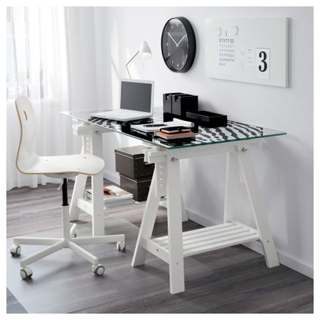 Столешница из закаленного стекла устойчива к загрязнениям и проста в уходе. Столешницу можно установить на комфортной для вас высоте, так как высота ножек регулируется от 60 до 90 см. Размер: 99x52 см