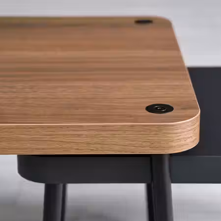 Столешница из ДСП с отделкой пленкой обеспечивает практичную поверхность, которая приглушает звуки при использовании стола.