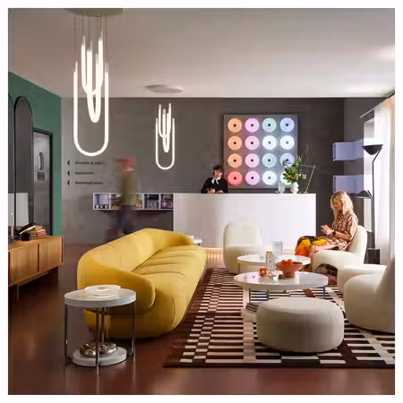 Круглый стол с плавными линиями создает в комнате располагающую атмосферу.