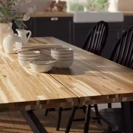 Мебель изготовлена из акации — натурального и прочного материала высокой плотности.