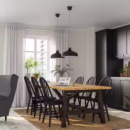 В дизайне этой легкой и изящной обеденной группы из ясеневого шпона четко прослеживаются нотки скандинавского стиля в лучших традициях ремесленного искусства.