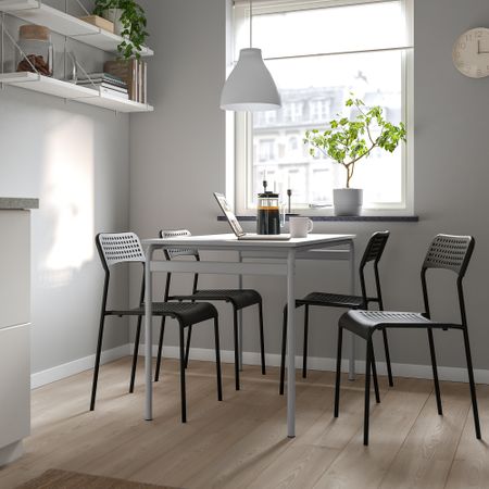 Стол и 4 стула, серый серый-черный, 110 см IKEA ADDE АДДЕ, GRÅSALA