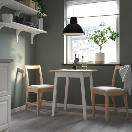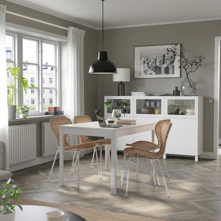 Этот стол на 4 человек легко разложить с помощью вкладной доски, чтобы за ним комфортно разместились 6 человек. Вкладную доску легко достать и установить, а когда гости уйдут — снова убрать под столешницу.