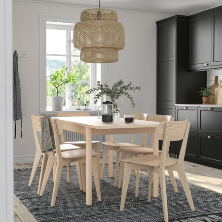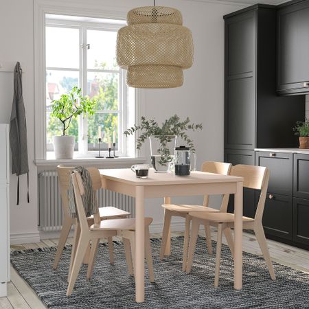 Столешница этого стола сделана из березового шпона, что придает ему естественный вид со скандинавским оттенком. Благодаря подготовленным отверстиям в столешнице ножки легко установить.