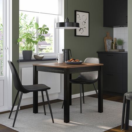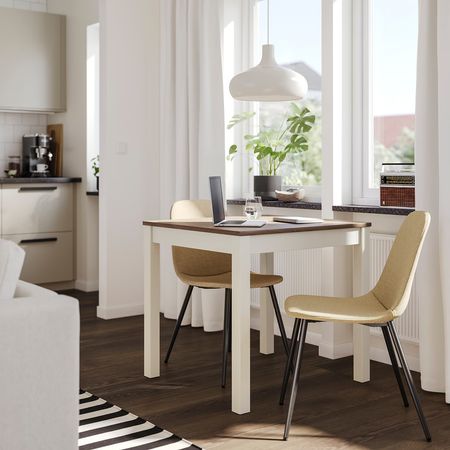 Создайте уникальную обеденную зону с серией SKÅLSTA, комбинируя сиденья с каркасами стульев и столешницы с ножками для стола, либо просто выберите готовый комплект.