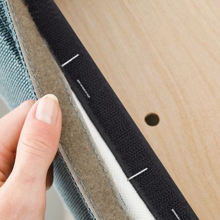 Застежки-липучки фиксируют подушку.Двустороннюю подушку можно переворачивать для равномерного износа.Легко содержать в чистоте, так как можно стирать в машине.