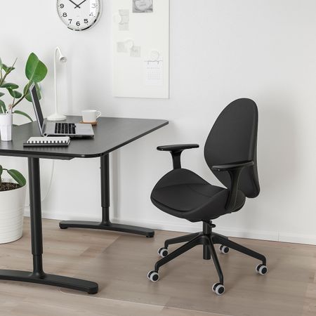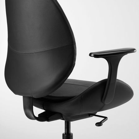 С подлокотниками и закруглённой спинкой для дополнительного комфорта.Резиновые накладки на ножки обеспечивают устойчивость и не повреждают пол.Подходит для барного стола ФАНБЮН.