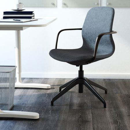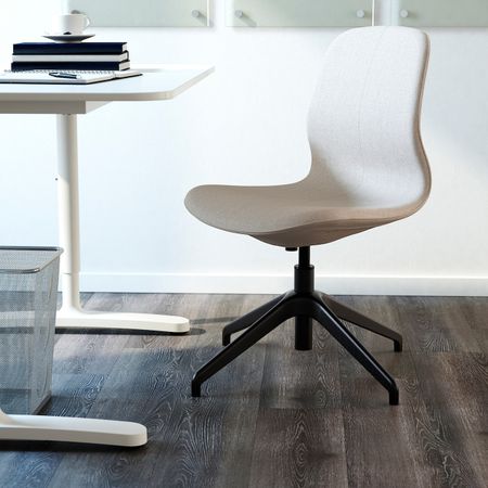 Этот офисный стул отличается плавными линиями, продуманными деталями и простым в использовании механизмом, который спрятан под сиденьем.