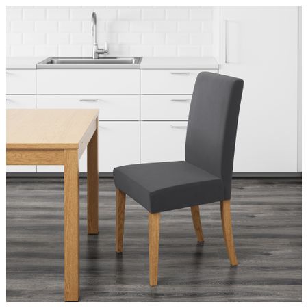 Высокая спинка и сиденье с наполнителем из полиэстерной ваты обеспечивают максимальный комфорт.Ножки стульев изготовлены из массива дерева – прочного натурального материала.Дополните чехлом ХЕНРИКСДАЛЬ разных цветов и материалов.