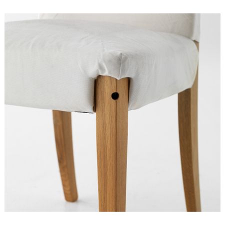 Высокая спинка и сиденье с наполнителем из полиэстерной ваты обеспечивают максимальный комфорт. Ножки стульев изготовлены из массива дерева – прочного натурального материала. Дополните чехлом ХЕНРИКСДАЛЬ разных цветов и материалов.