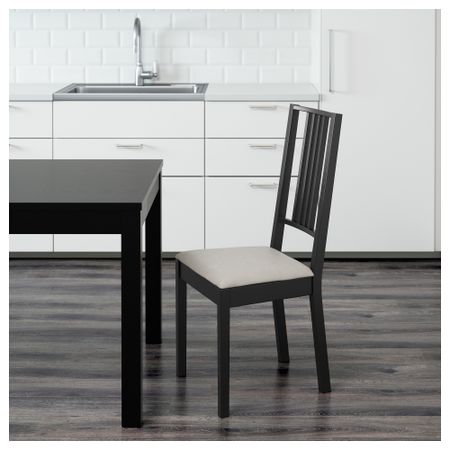 Сиденье с мягким наполнителем обеспечивает комфорт. Съемный чехол можно стирать в машине. Ножки стульев изготовлены из массива дерева – прочного натурального материала. Можно дополнить наклейками на мебельные ножки ФИКСА; защищают пол от царапин.