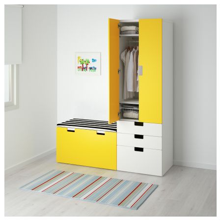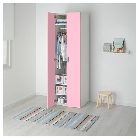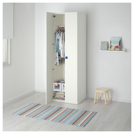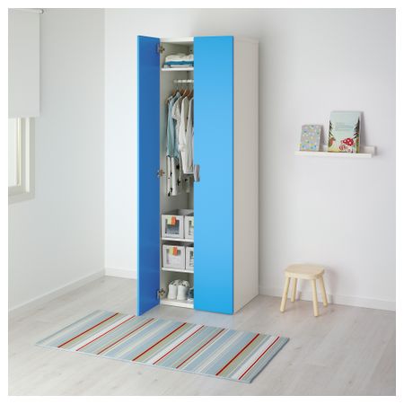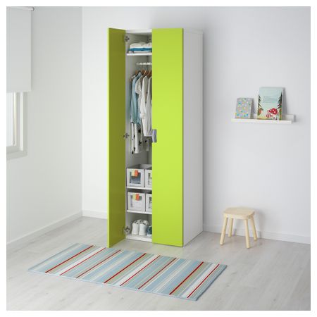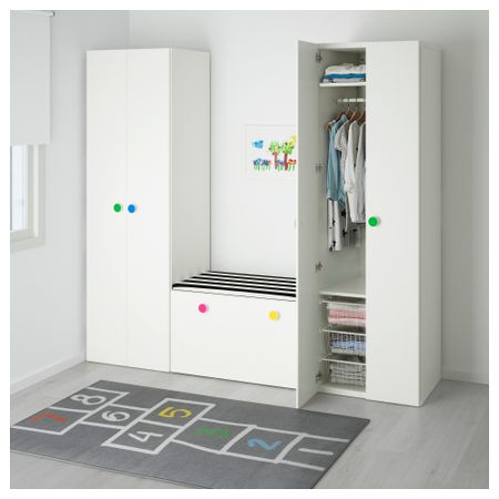 С помощью ярких разноцветных наклеек вы сможете легко указать содержимое ящиков и шкафов. На наклейках можно мелом подписать содержимое ящика. Платяная штанга, проволочные корзины и полки позволят аккуратно развесить и разложить все вещи. Размер: 210x50x192 см