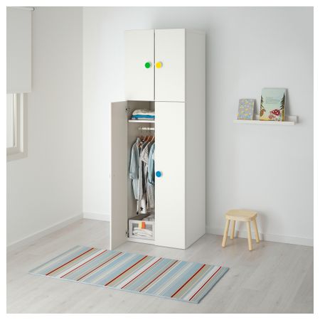 С помощью ярких разноцветных наклеек вы сможете легко указать содержимое ящиков и шкафов. На наклейках можно мелом подписать содержимое ящика. Достаточная глубина для стандартных плечиков. Размер: 60x50x192 см