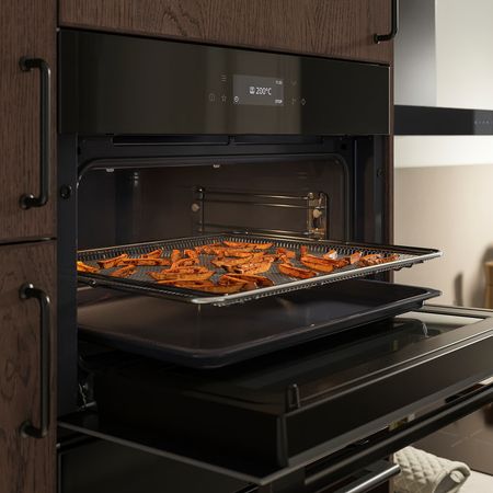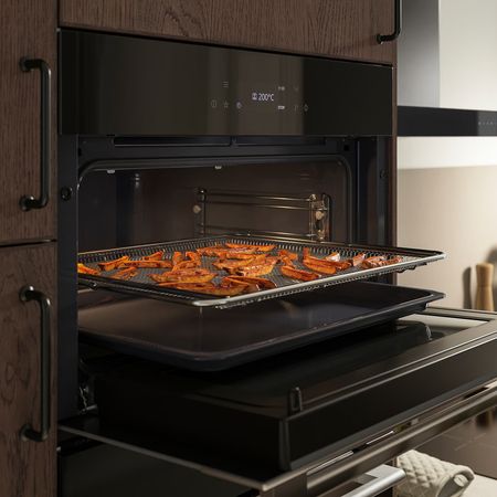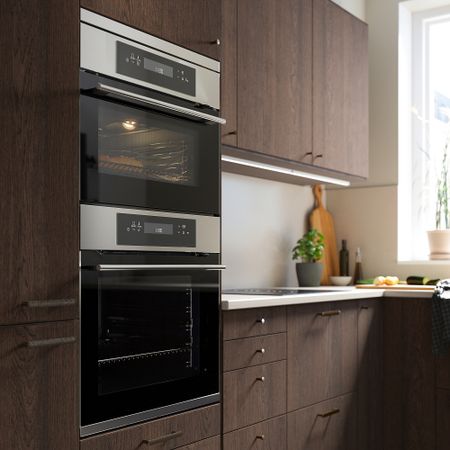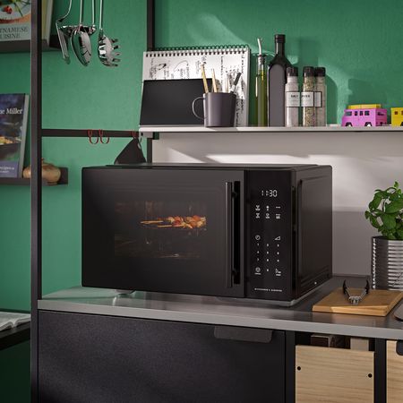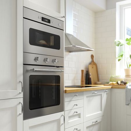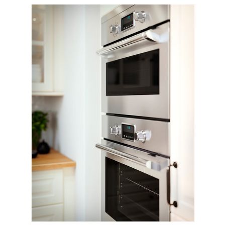 Встраиваемая СВЧ-печь FRILLESBO из серии IKEA 300 сочетает в себе стильный корпус из нержавеющей стали и такие базовые функции, как разморозка, нагрев и разогрев — остатки продуктов можно не выбрасывать, а просто подогреть на следующий день.