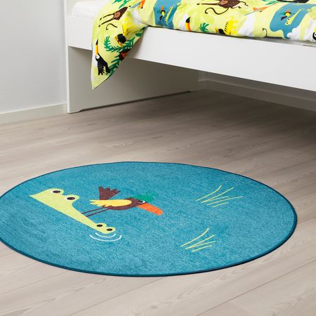 Дизайнер IKEA of Sweden. Длина: 140 см Ширина: 133 см Площадь: 1.86 м² . Материалы Ворс: 100% нейлон Основная ткань: 100% полипропилен Подкладка: Синтетический каучук