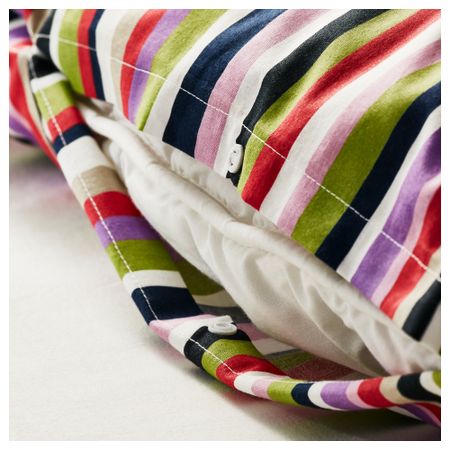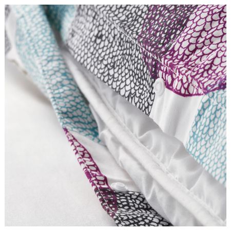 Окрашено в пряже; пряжа красится перед переплетением; придает постельному белью мягкость. Пододеяльник с декоративными завязками – одеяло не будет выбиваться. Двусторонний пододеяльник с разным рисунком каждой стороны. Количество нитей на кв.