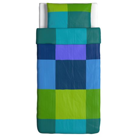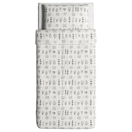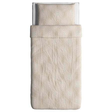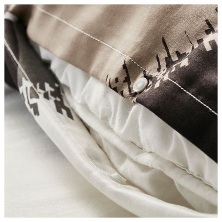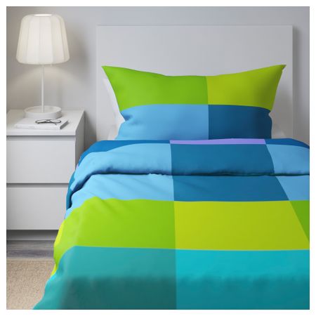 Стеганое мягкое покрывало и чехол на подушку. Благодаря молнии чехол легко снять для стирки. Упаковано в сумку; удобно перевозить и хранить. На кровати шириной 90 см покрывало будет свисать на 45 см с каждой стороны.