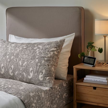 Плотная, прочная и мягкая ткань. Хлопок — мягкий и приятный на ощупь натуральный материал. Натяжная простыня на резинке подходит для матрасов толщиной до 26 см. Количество нитей на кв. дюйм: 152.