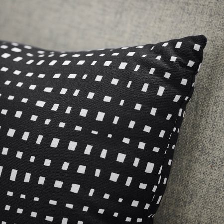 Это мягкий чехол на подушку из ткани с нитями темного-синего и белого цветов, которые хорошо видны в декоративной бахроме по бокам. Естественные вариации цвета ткани придают каждому изделию уникальность. Благодаря молнии чехол легко снять.
