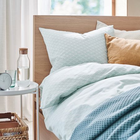Постельное белье с повторяющимся орнаментом, нанесенным методом печати на ткань из тонкого хлопка — долговечного натурального материала, который с каждой стиркой будет становиться все мягче и мягче.