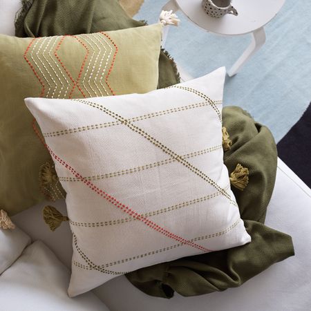 Благодаря молнии чехол легко снять, чтобы постирать в машине.Декоративная вышивка оживляет орнамент и расцветку.Подходит к внутренним подушкам 50х50 см. Длина: 50 смШирина: 50 см.