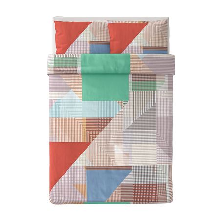 Постельное белье с геометрическим орнаментом на тонкой ткани из хлопка — прочного натурального материала, который с каждой стиркой будет становиться все мягче и мягче.