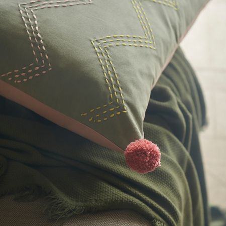 Этот чехол на подушку с цветочным винтажным орнаментом станет настоящим всплеском цвета в интерьере. Ткань изготовлена из переработанного полиэстера, что позволяет сократить количество отходов и дать пластику новую жизнь.