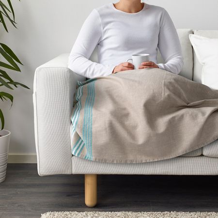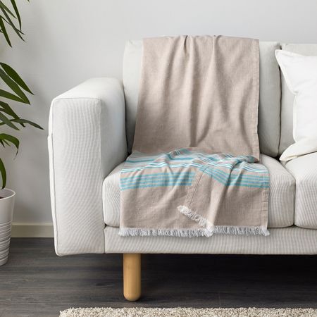 Можно стирать в машине.Можно уютно укутаться лежа на диване или накинуть на себя, когда прохладно.Естественные вариации натурального цвета неокрашенных и неотбеленных хлопка и льна делают каждый плед уникальным.Есть разные цвета.