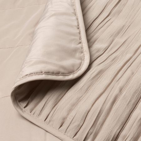 Складки на ткани придают фактуре покрывала выразительность.Полиэстерный наполнитель придает покрывалу особую мягкость.На кровати шириной 90 см покрывало будет свисать на 45 см с каждой стороны.