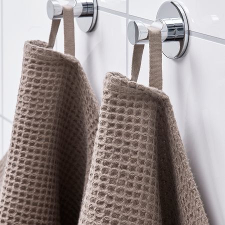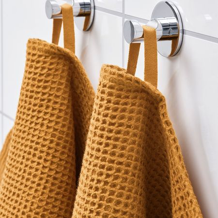 Петелька для подвешивания контрастного цвета не только практична, но и декоративна.Мягкая ткань из хлопка и вискозы впитывает влагу и сохнет быстрее, чем хлопковая.Имеются разные размеры.Есть разные цвета.