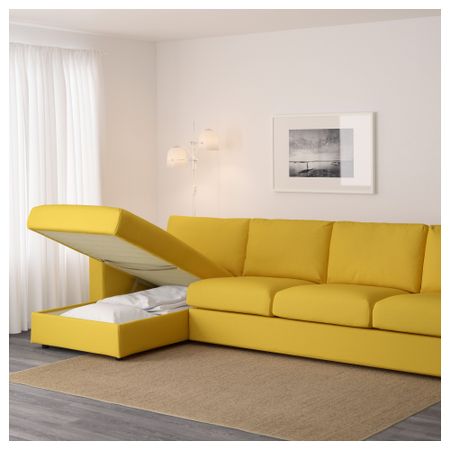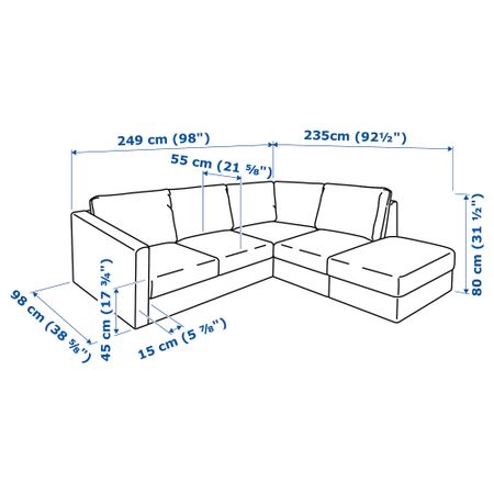 Табурет для ног с отделением для хранения. Съемный чехол можно стирать в машине. Бесплатно 10 лет гарантии. Подробнее об условиях гарантии – в гарантийной брошюре. Высота, включая подушки спинки: 80 см. Глубина: 98 см. Ширина правый: 235 см.