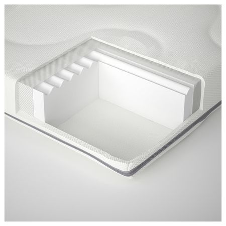 Этот пенополиуретановый матрас толщиной 5 см одинаково мягок с любой стороны.