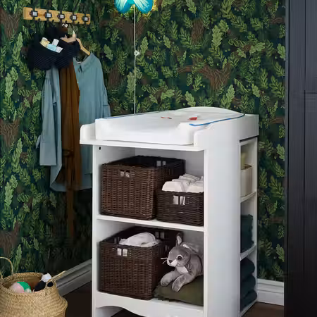Этот модуль классического дизайна будет «взрослеть» вместе с вашим ребенком — от полок для подгузников за пеленальным столиком до стеллажа для игрушек, а потом и учебников. Его можно поставить на пол или повесить на стену —