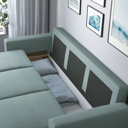 С дивана-кровати BÅRSLÖV с большими удобными подушками просто не хочется вставать. На нём можно общаться с друзьями, отдыхать или спать, а внутри даже есть практичный отсек для хранения. За тканью легко ухаживать, так что диван прослужит