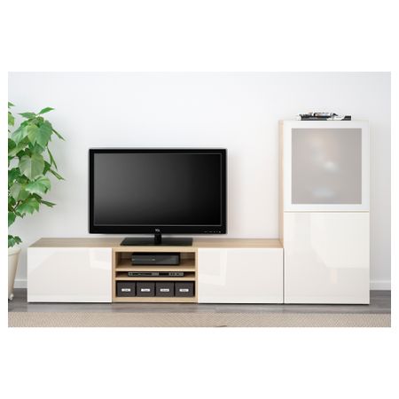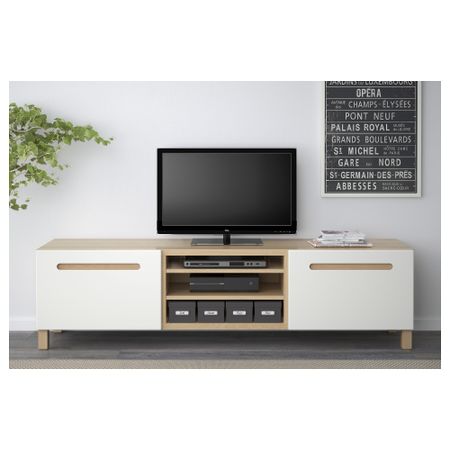 БЕСТО 090.643.04 Тумба для ТВ с ящиками, под беленый дуб, Марвикен белый (180x40x48 см)