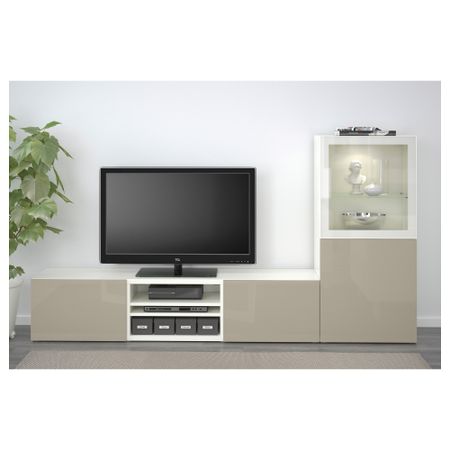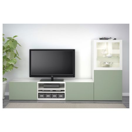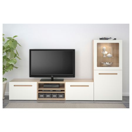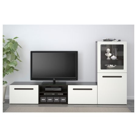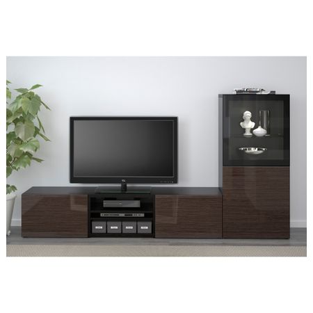 Шкаф для ТВ, комбинированный, стекляные дверцы БЕСТО, Ханвикен, Синдвик черно-коричневый прозрачное стекло (240x40x128 см)