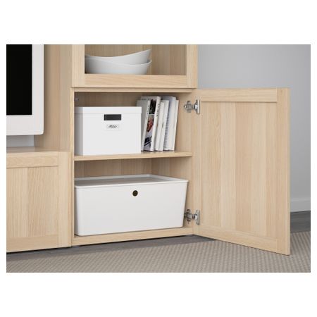 Благодаря доводчикам ящики и дверцы закрываются плавно и бесшумно. Два ящика и полки за дверцами обеспечат достаточно места для хранения. Размер: 240x40x128 см