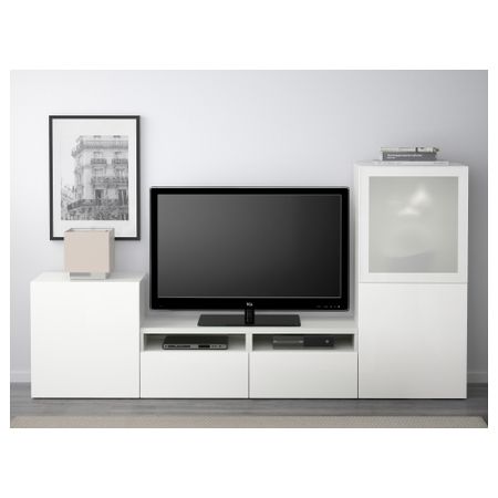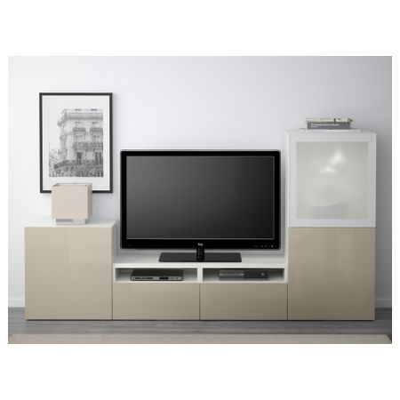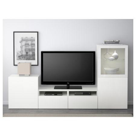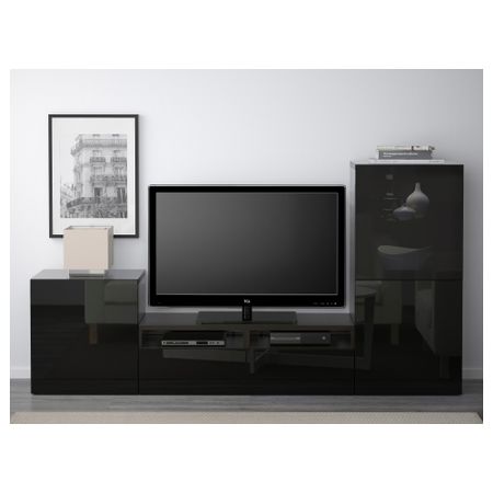 Благодаря интегрированному нажимному механизму ящики и дверцы открываются легким нажатием. Модули БЕСТО обеспечат достаточно место для хранения, чтобы в гостиной всегда царил идеальный порядок. Размер: 240x40x128 см